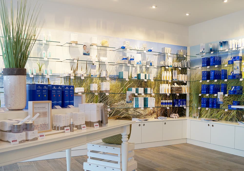 Am alten Standort im Langeooger Erlebnisbad wurden die Produkte überwiegend über den Tresen verkauft. Im Shop am Kavalierpad 12 sind alle Produkte frei zugänglich: Auf knapp 40 Quadratmetern Ladenfläche können Sie sich ungestört im Sortiment umsehen, Anregungen holen und Ihre Wunsch-Produkte ausprobieren.